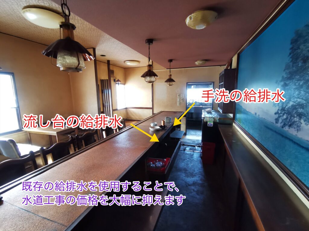 今回は以前食堂だった店舗のため、すでに何ヶ所か給排水が引かれている状態でした。