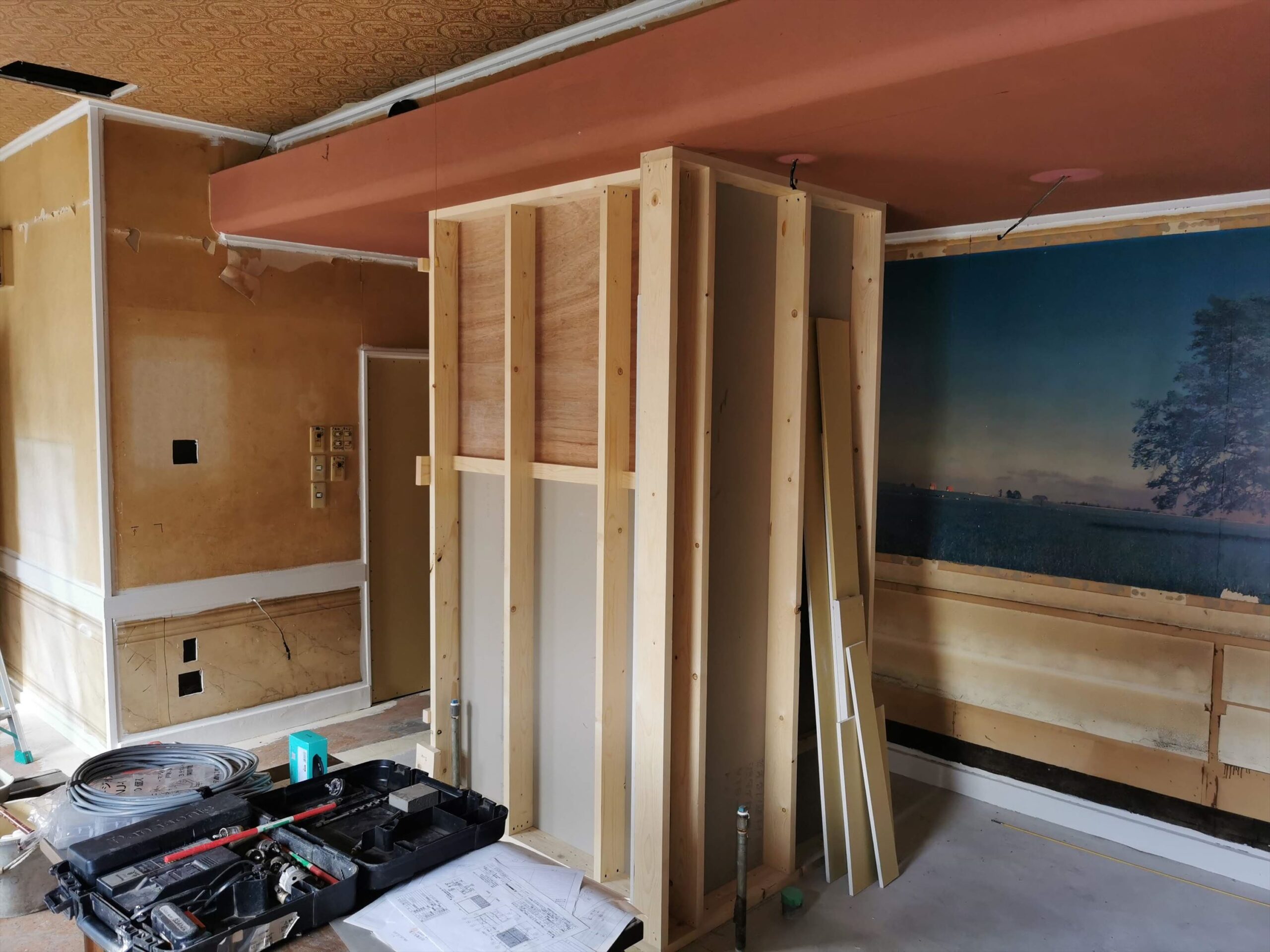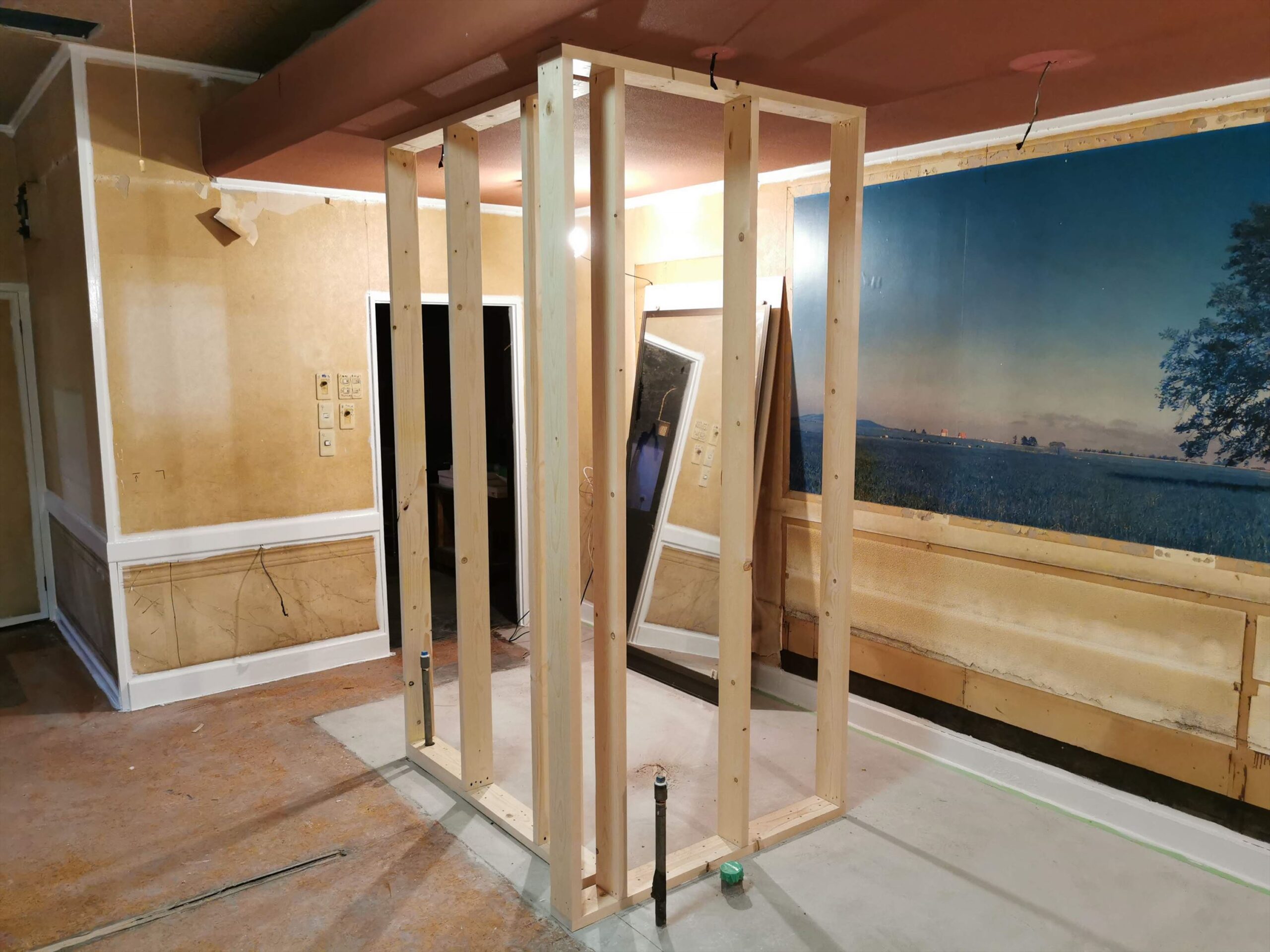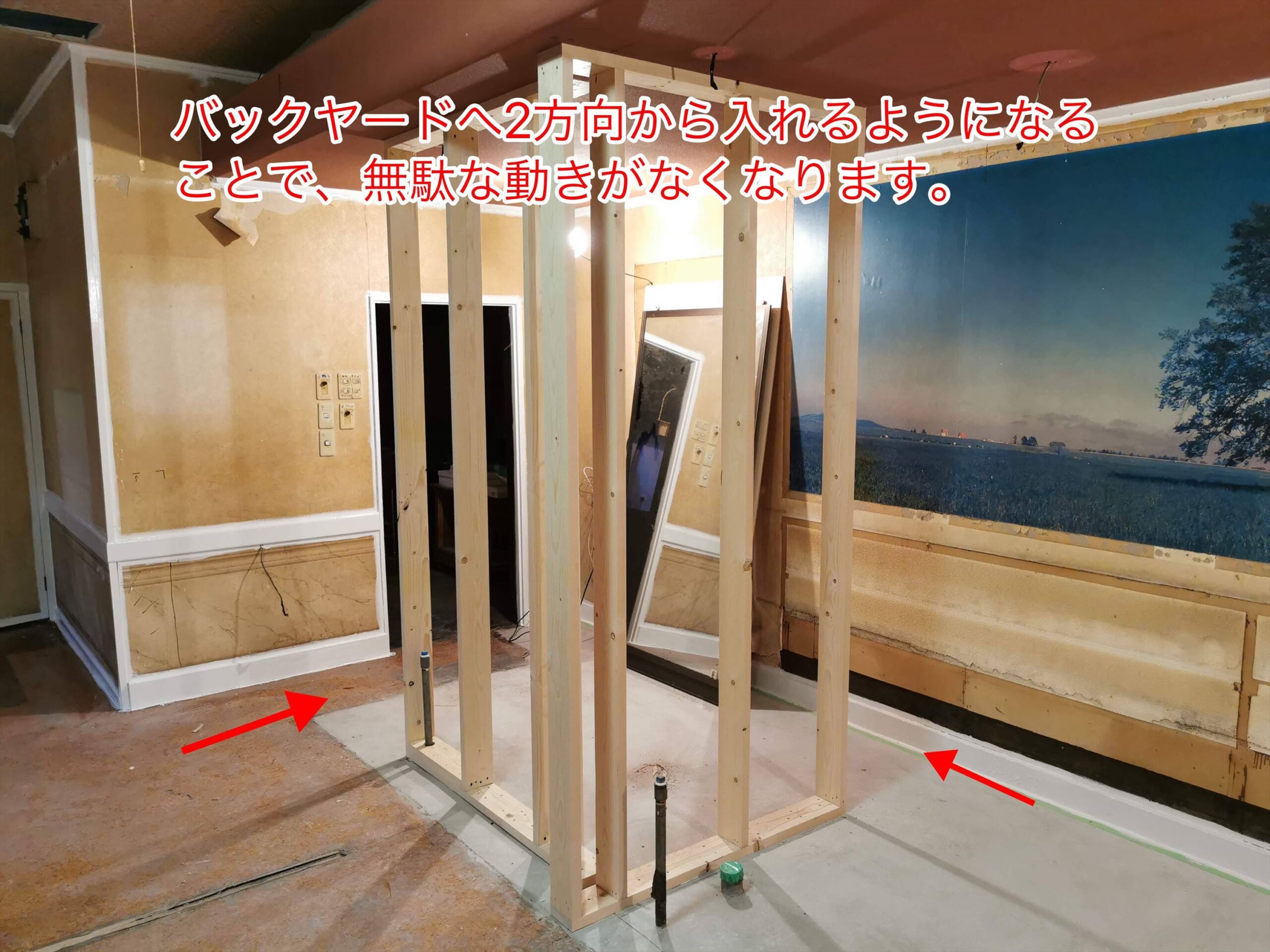 水道工事を削減したことで、副産物として、配管を埋めるために必要だったふかし壁の造作や、床下のはつり工事も無くなり、更に大幅な予算削減になりました。