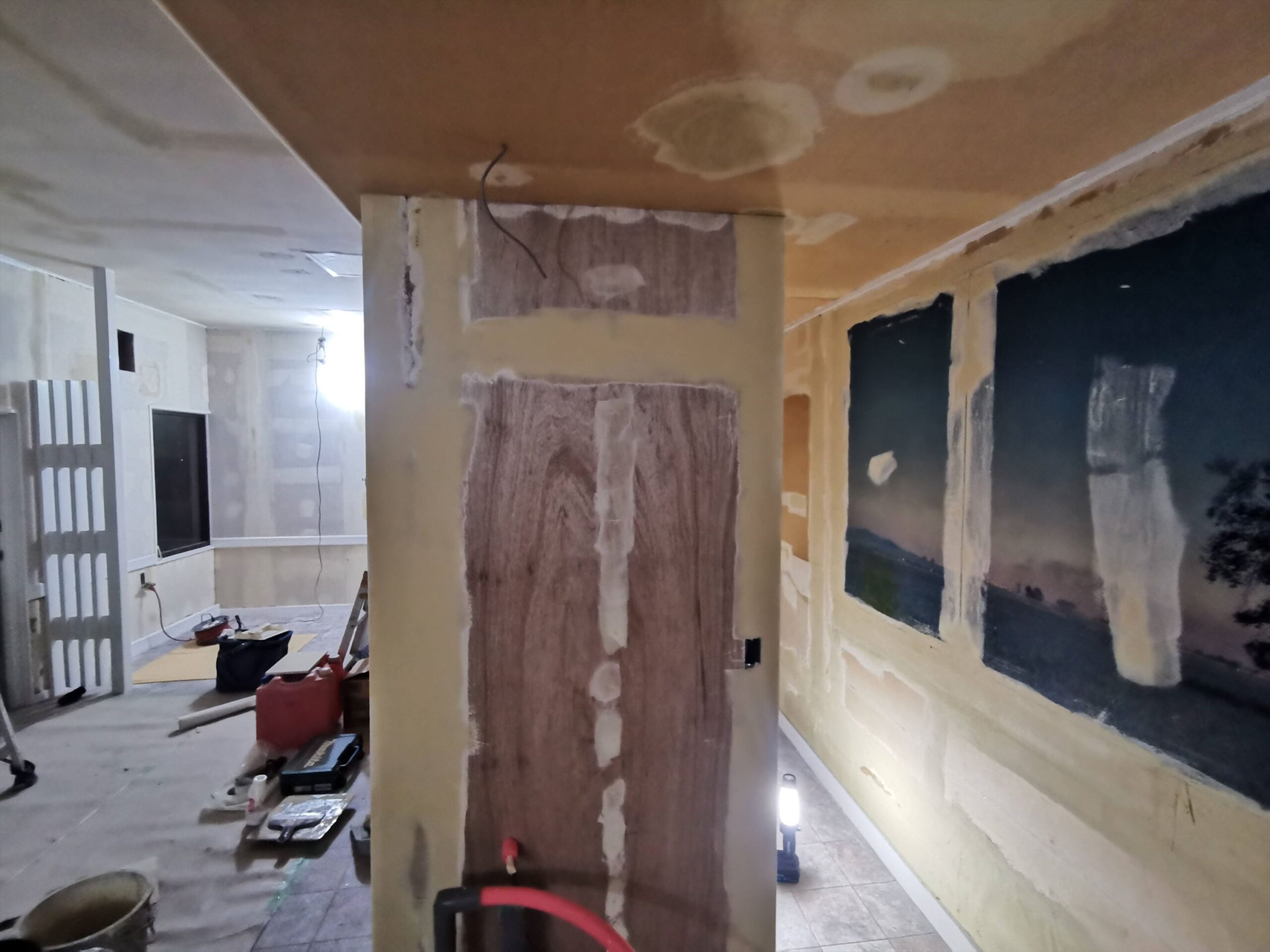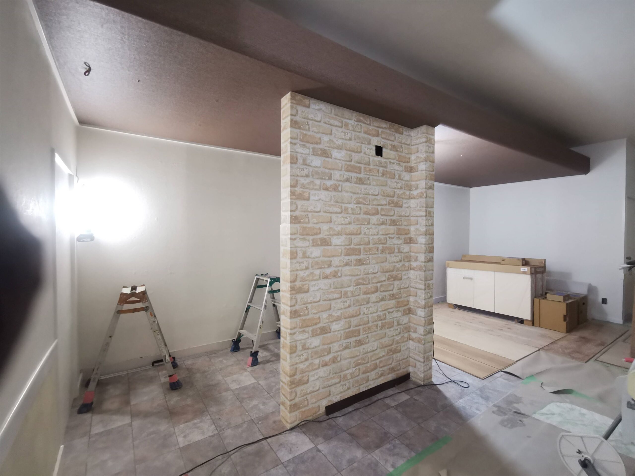 また、施工前にこのくらいのCGが見れますので、図面無し!CG無し!の契約でどうなるのだろうという不安も解消できると思います。※ご契約時は壁の高さが腰壁を設定していましたが、作業中に天井まで高くして欲しいというご希望とクロスの柄を反映させたため、ここまで近いイメージではありませんでしたが、再現性の高さはご確認いただけると思います。
